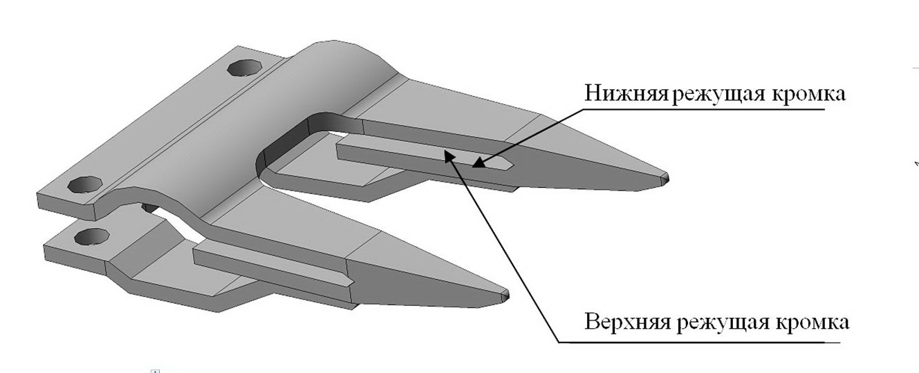 - пальцевый брус состоит из четырнадцати двойных пальцев, прикрепленных к полосе из стали 60С2А. Пальцы имеют две режущие кромки – верхнюю и нижнюю. Крепление пальца к брусу, двумя болтами обеспечивает надежность их крепления. Пальцы имеют заостренный носок, что исключает набивание полеглого травостоя.
