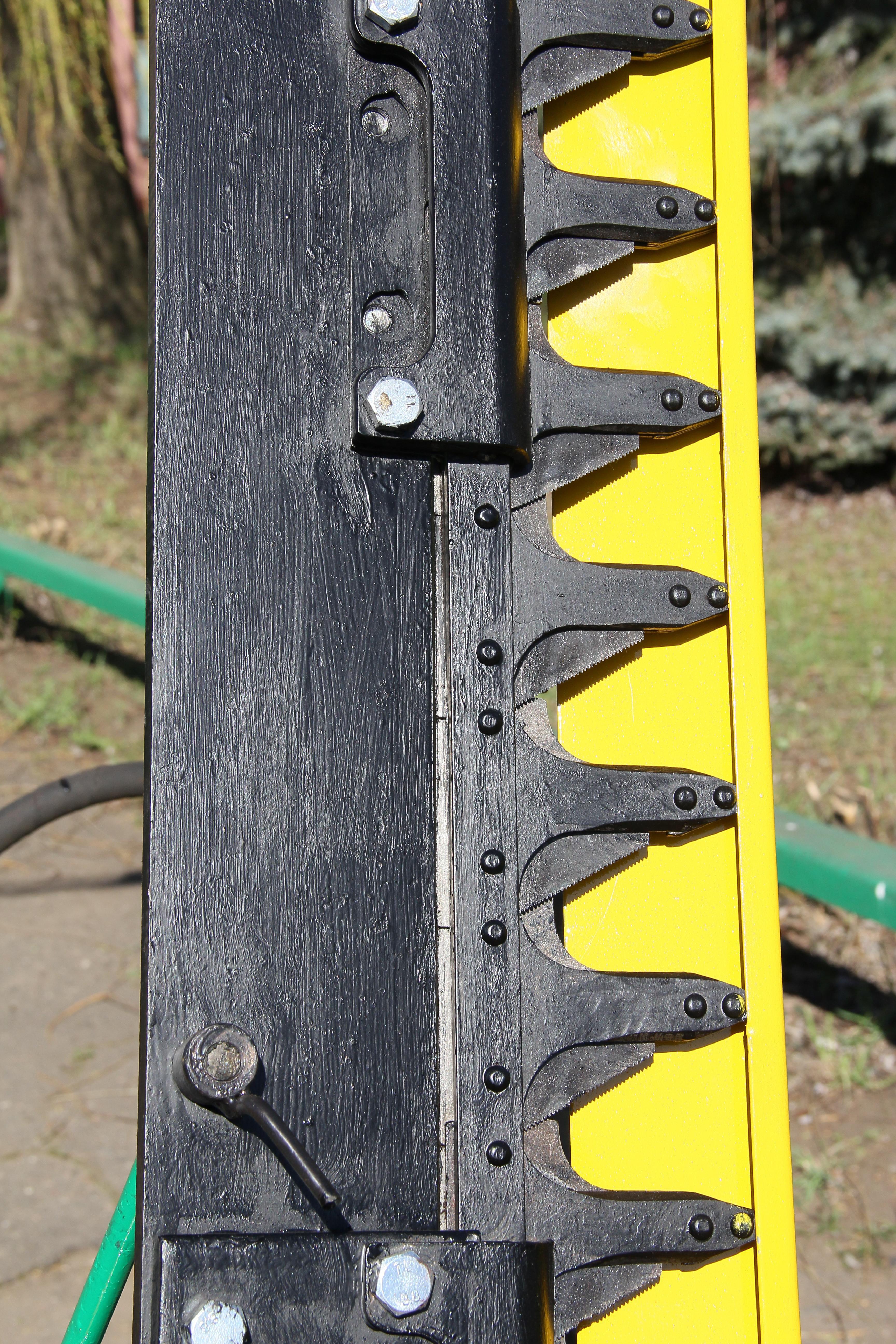 Крепление пальцевого бруса и ножа, к механизму привода, выполнено быстросъёмным, что облегчает работу обслуживающего персонала по замене сегментов и пальцев.